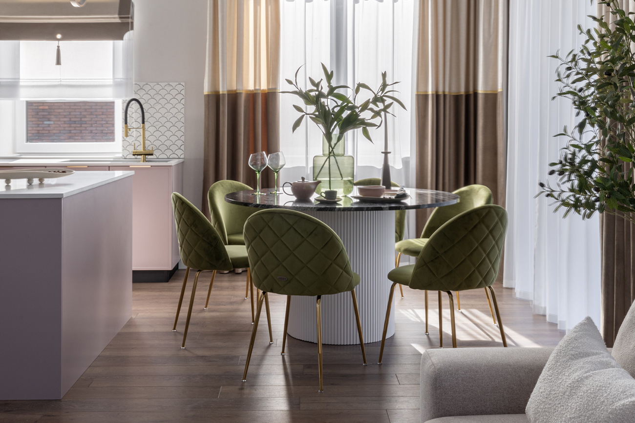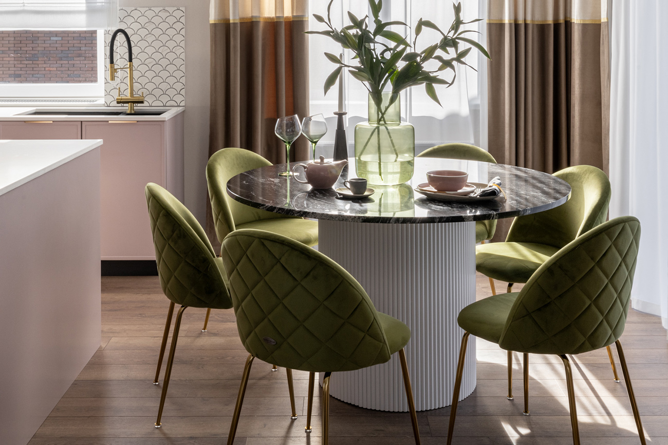 Представляем вашему вниманию элегантный велюровый стул, который станет настоящим украшением вашей столовой. Мягкая обивка из высококачественного велюра придает стулу роскошный вид и обеспечивает невероятный комфорт. Тонкие золотистые ножки придают стулу легкость и изящество, а также создают контраст с глубоким цветом обивки. Велюровый стул – это идеальное сочетание стиля и практичности. Он прекрасно подойдет для неоклассических обстановок кухонь или обеденных зон. Благодаря универсальной форме, этот стул можно разместить не только в столовой, но и в интерьере гостиной или кабинете. Наполнитель пенополиуретан. Размер сиденья: Г43*Ш45*В47см.
