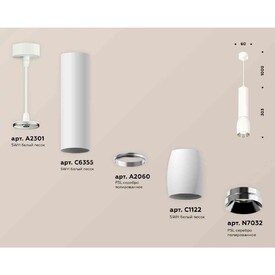 Комплект подвесного светильника Ambrella light Techno Spot XP1122020 SWH/PSL белый песок/серебро полированное (A2301, C6355, A2060, C1122, N7032)