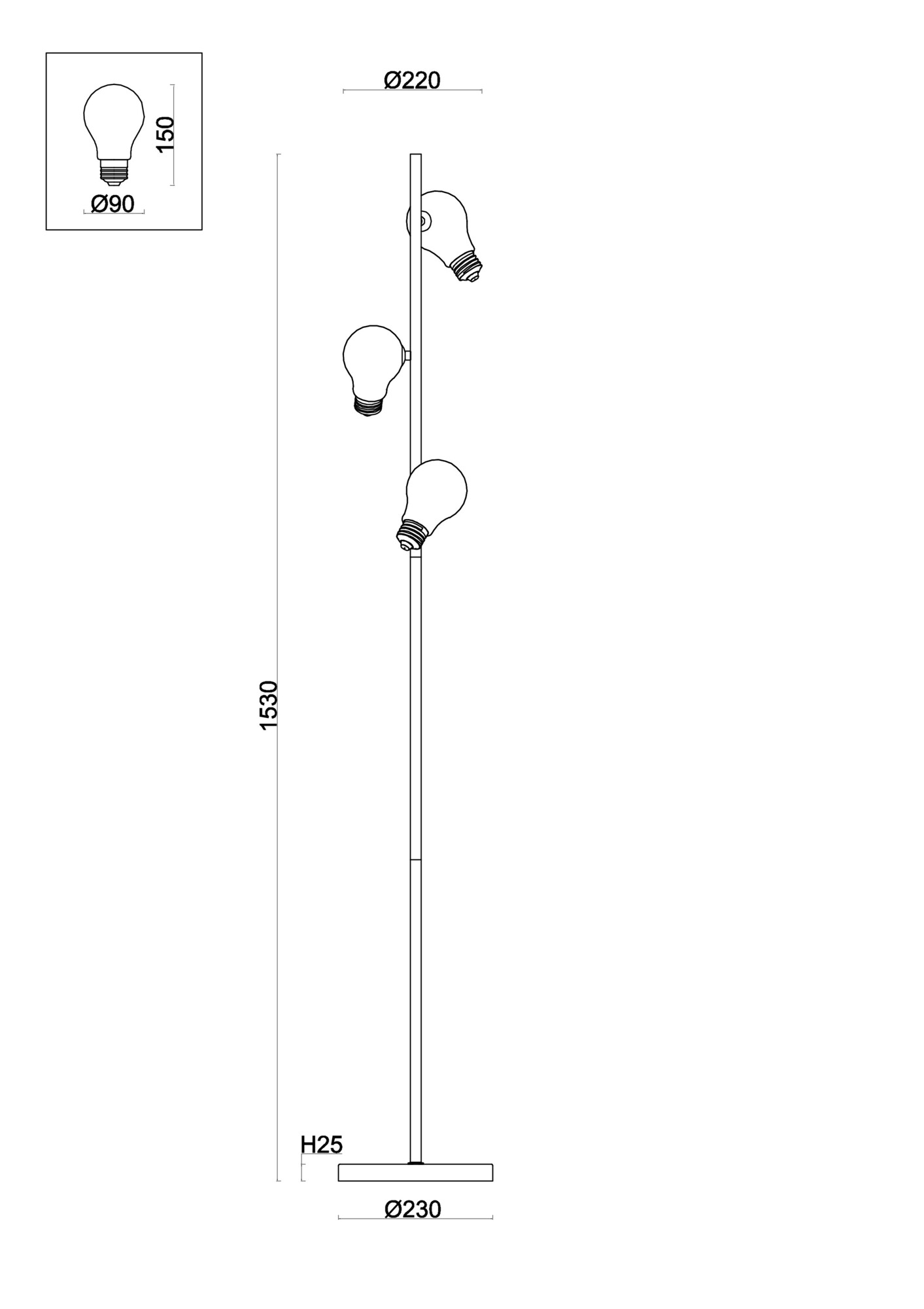 - Высота плафона (абажура): 150