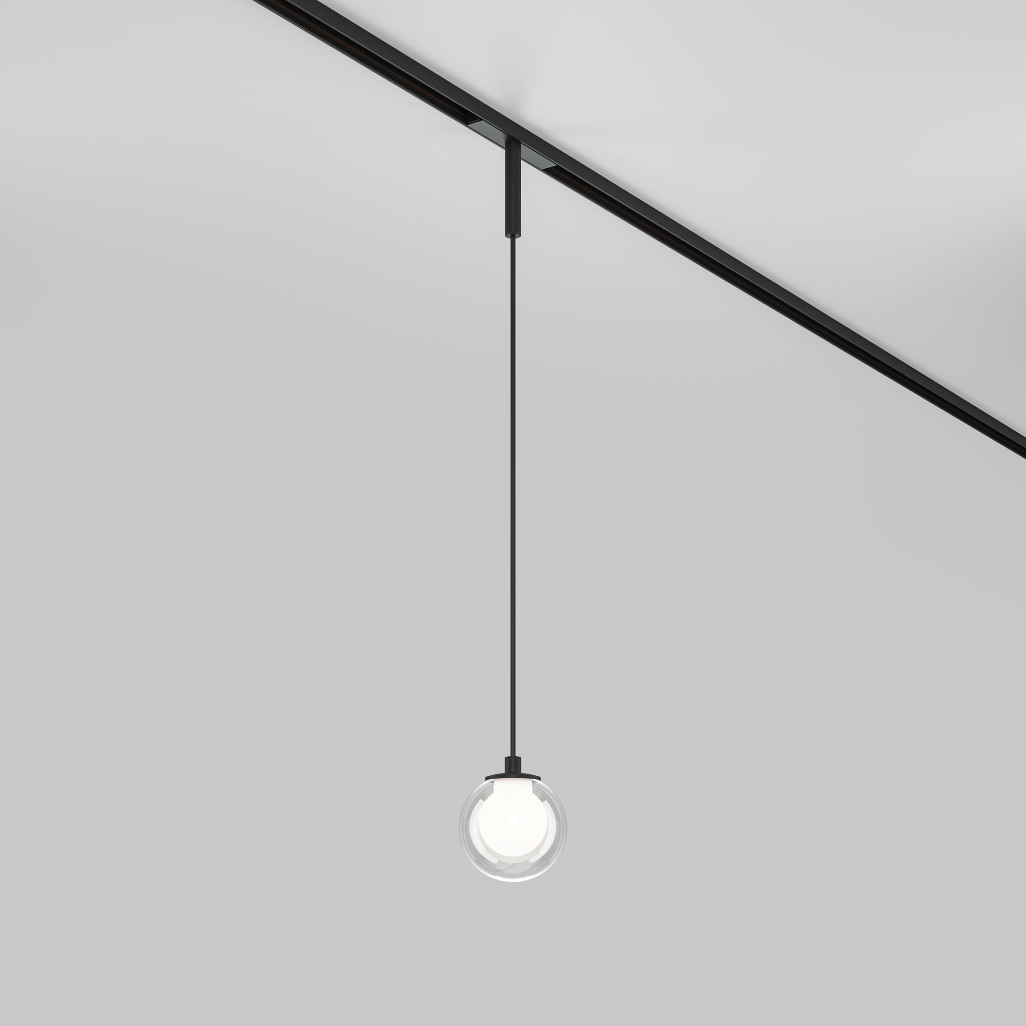 Необычный дизайнерский светильник со стеклянным плафоном, внутри которого «спрятан» шарообразный матовый рассеиватель с LED-источником. Широкий угол рассеивания обеспечивает равномерное распределение света во все стороны. Доступны два исполнения — встраиваемая конструкция или с подвесным механизмом. Светильник поддерживает функции диммирования и переменной цветовой температуры. При использовании стандартных блоков питания без функции управления, светильники при установке в трек одной стороной имеют цветовую температуру 3000K, а при установке другой стороной – 6000К. Светильники поддерживают функцию группового диммирования и регулировки цветовой температуры при использовании блоков питания по протоколам Bluetooth Mesh или DALI.