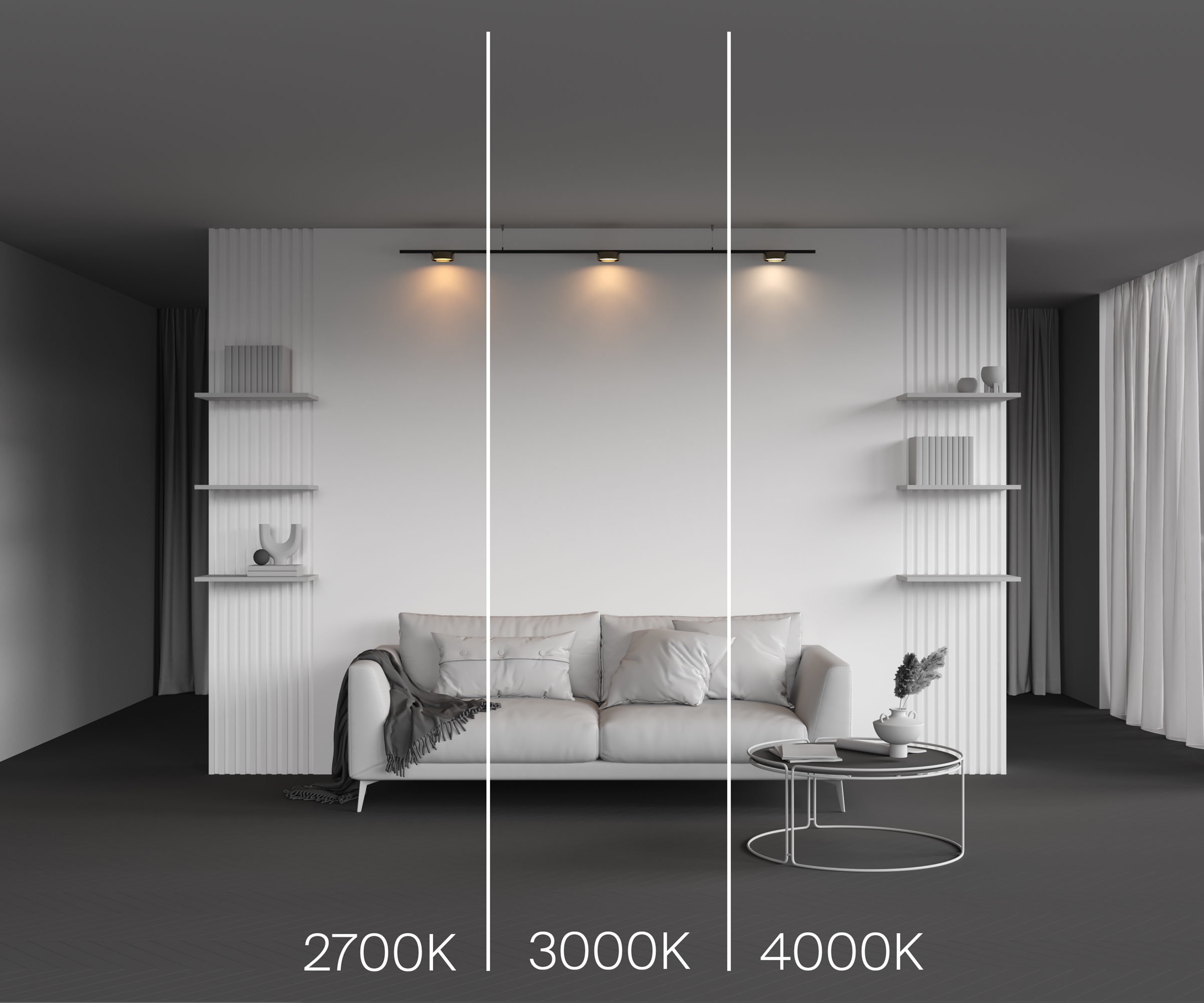 2700?Цветовая температура – это характеристика интенсивности излучения источника света. Ниже пример как меняется тип света в зависимости от цветовой температуры.