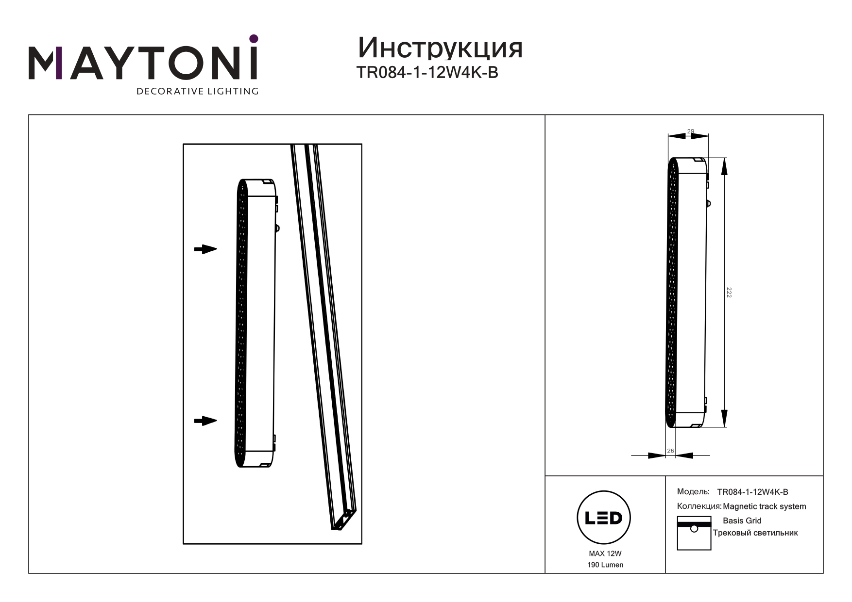 Купить "Трековый магнитный светильник Maytoni Basis Grid TR084-1-12W4K-B"