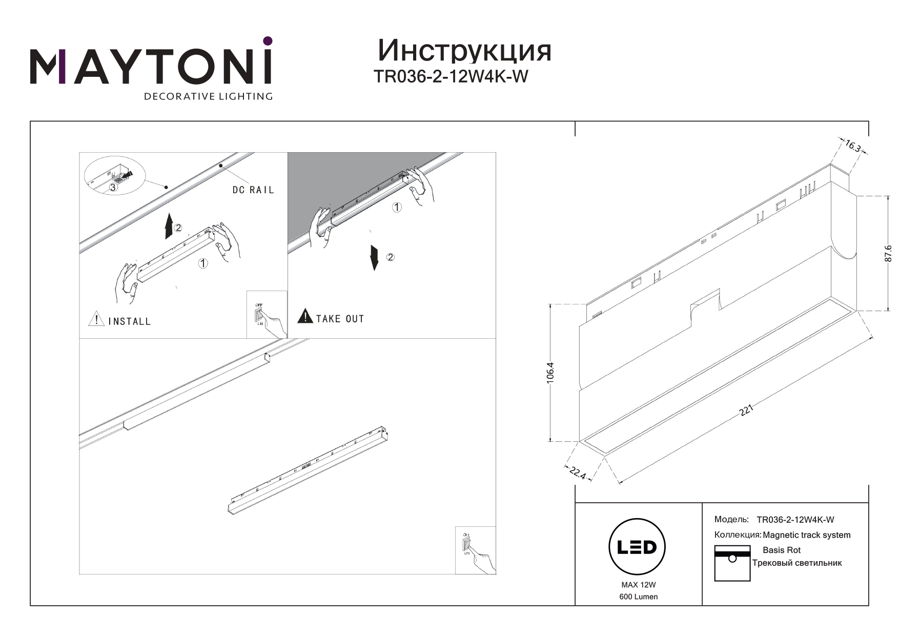 Все характеристики TR036-2-12W4K-W