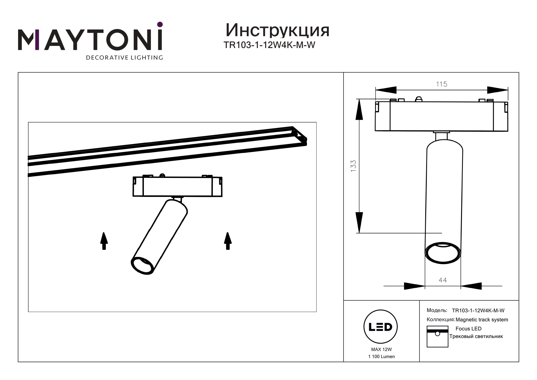 Все характеристики TR103-1-12W4K-M-W