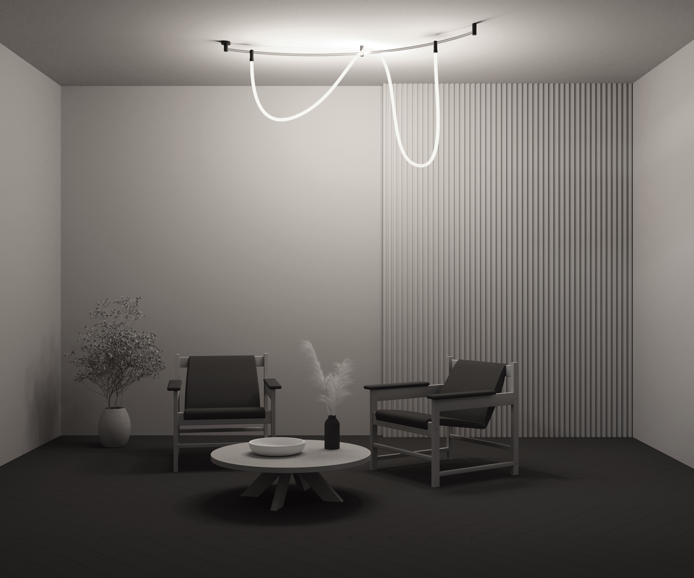Стильный светильник в виде гибкого неона из прочного пластика, устойчивого к перепадам температур. Цвет арматуры — черный. Для серии характерна высокая плотность размещения светодиодов. ВЫсокая ощность 48 Вт позволяет использовать светильник в качестве основного освещения.