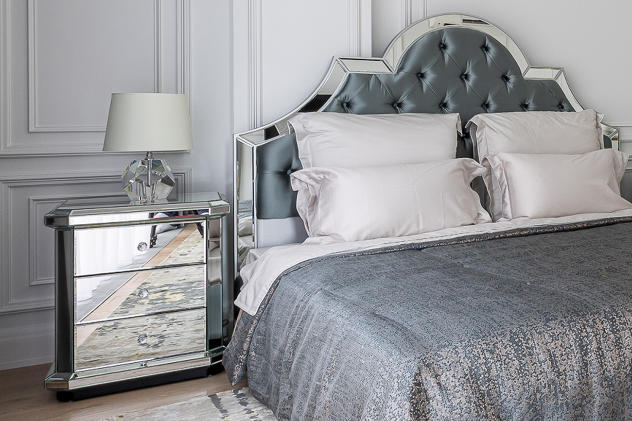 Сдержанная по форме, но эффектная в исполнении зеркальная тумбочка — выбор покупателей с воображением и художественным вкусом. Отражающая поверхность взаимодействует с окружающими предметами, создавая необычный акцент в интерьере. Три вместительных ящика предназначены для хранения самых разных вещей: от косметики до белья. На фото зеркальная тумбочка смотрится просто изумительно, но в реальности она выглядит еще роскошнее. Красивые хрустальные ручки добавляют изысканности и шарма. Тумба прекрасно сочетается практически со всеми видами мебели и декора, а также различными вариантами текстиля.