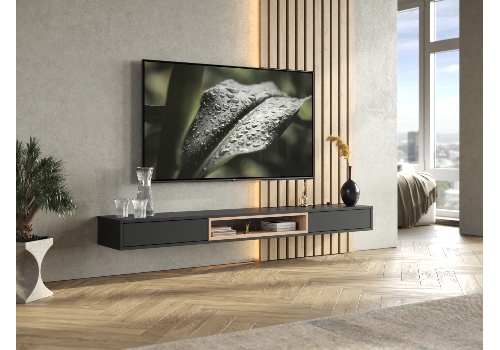 Купить "ТВ-тумба Woodville Делора 1,8м черный / дуб вотан 674722"