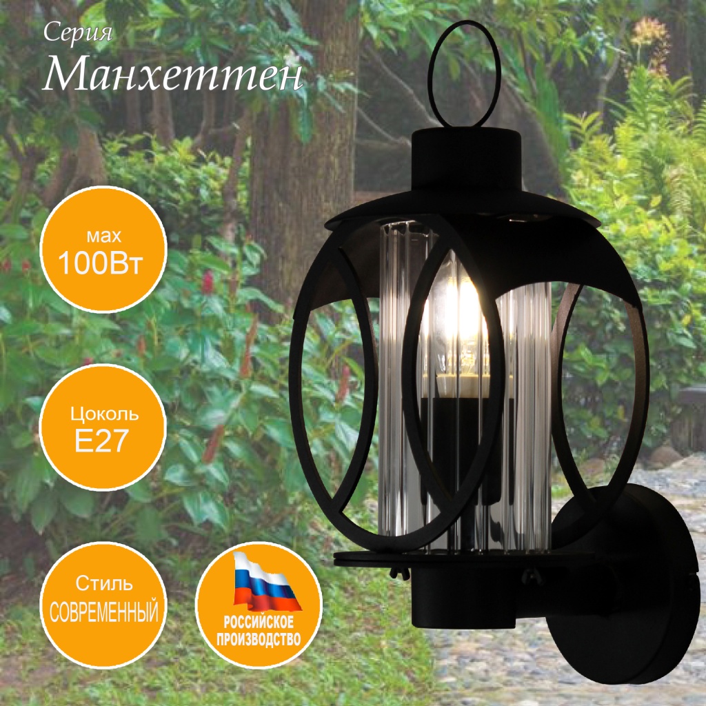 Купить "Уличный настенный светильник чёрный Манхеттен Элетех 1030480547"