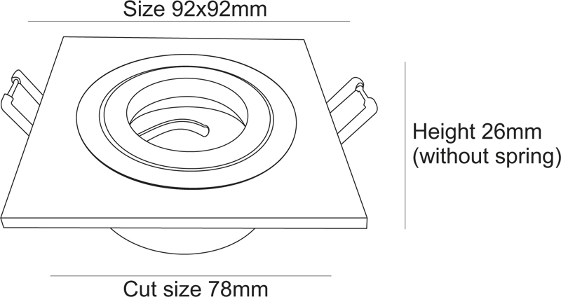 - Диаметр врезного отверстия: 78 мм (7.8 см)