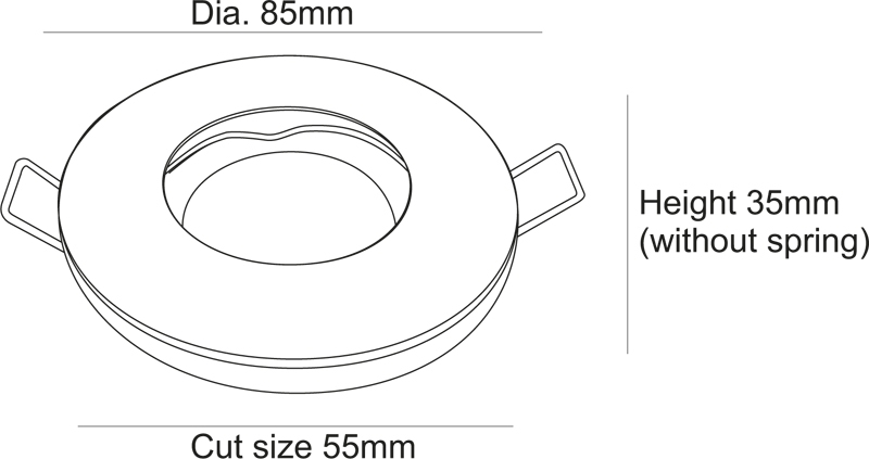 - Диаметр врезного отверстия: 55 мм (5.5 см)