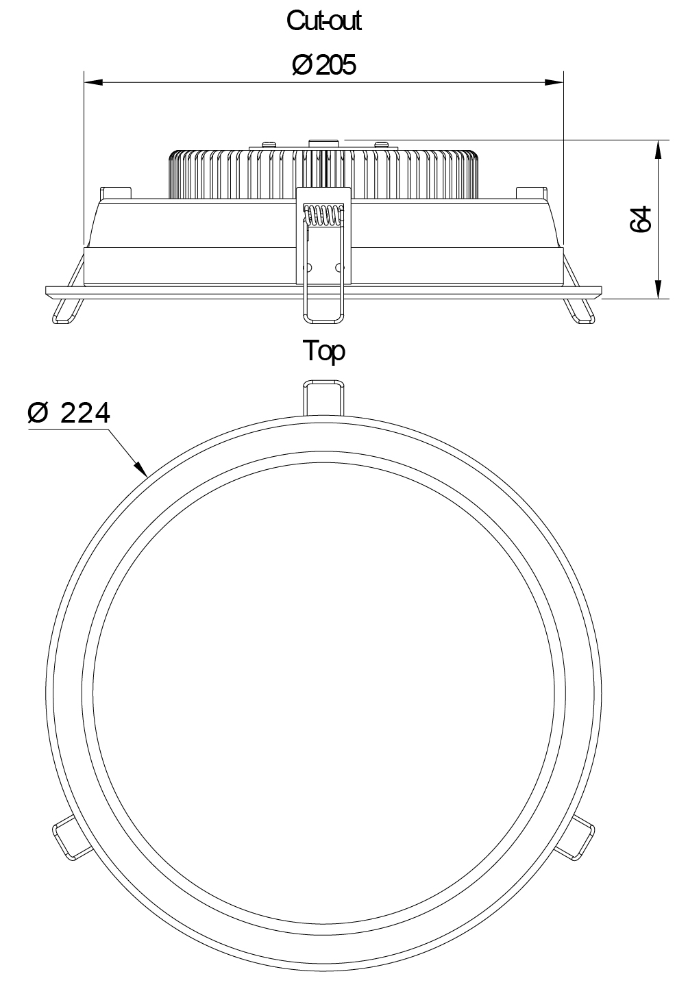 - Диаметр врезного отверстия: 205 мм (20.5 см)