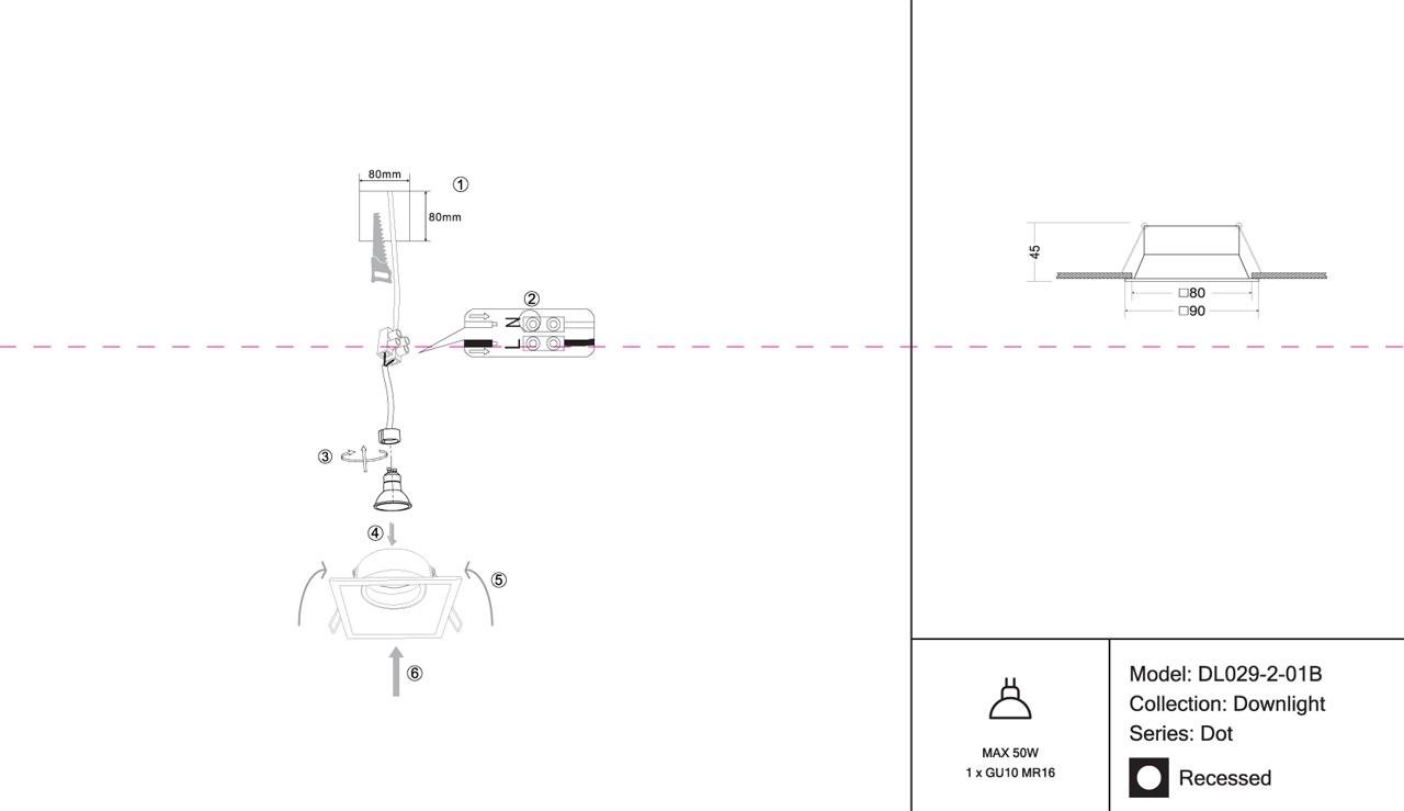 - Диаметр врезного отверстия: 80 мм (8 см)