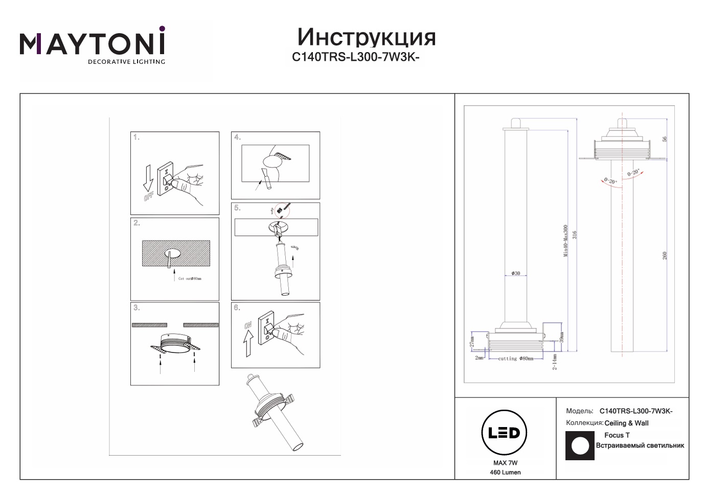 Данную модель C140TRS-L300-7W3K-BBS с быстрой доставкой спешите купить по цене 3 529 ₽ в магазине 220svet.ru