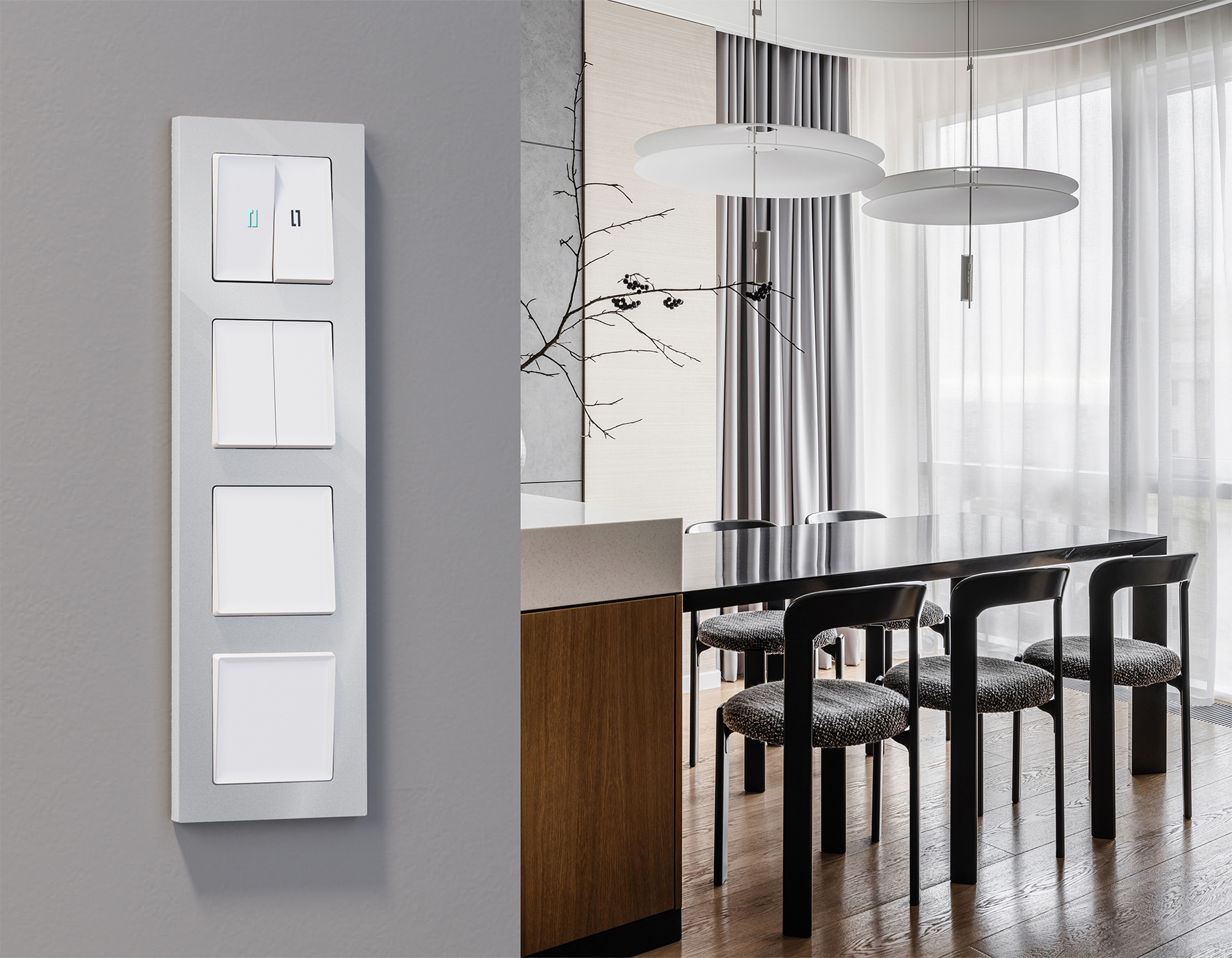 Многогранный ассортимент Ambrella Volt включает в себя механизмы, лицевые панели и рамки, а также комплекты, доступные в различных цветовых решениях. Продукция представлена в модульном исполнении, что позволяет гибко настраивать внешний вид и функциональность. Вам будет легко заменить лицевую панель, рамку или механизм, найдя идеальное сочетание цветов.