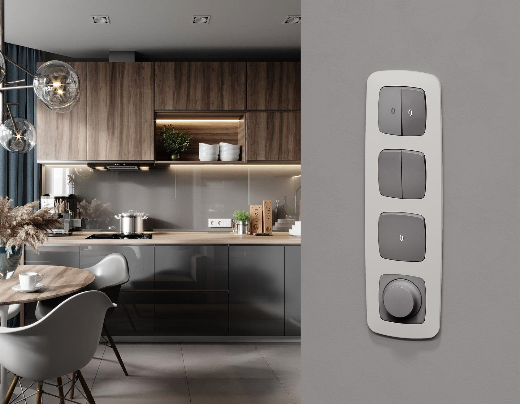 Многогранный ассортимент Ambrella Volt включает в себя механизмы, лицевые панели и рамки, а также комплекты, доступные в различных цветовых решениях. Продукция представлена в модульном исполнении, что позволяет гибко настраивать внешний вид и функциональность. Вам будет легко заменить лицевую панель, рамку или механизм, найдя идеальное сочетание цветов.